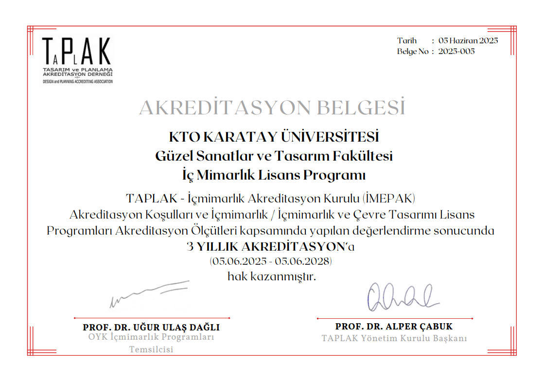İç Mimarlık Bölümü Akreditasyon Belgesi