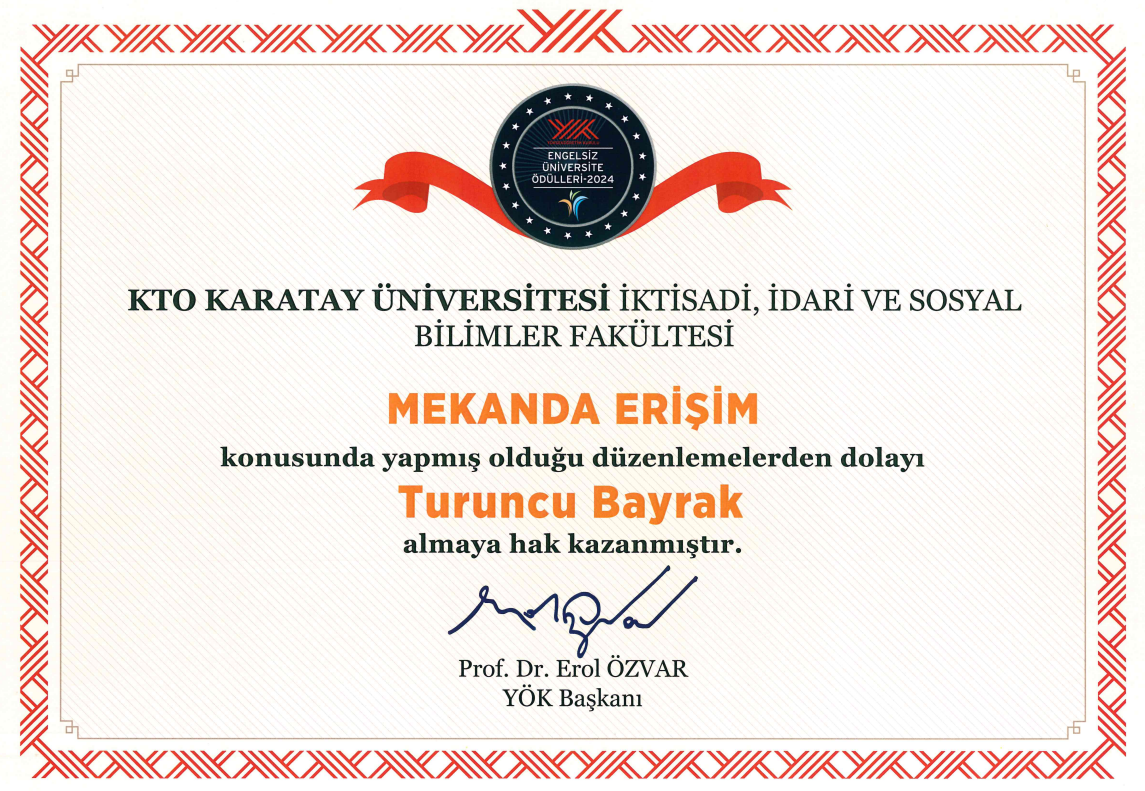 İktisadi, İdari ve Sosyal Bilimler Fakültesi Mekanda Erişim Ödülü