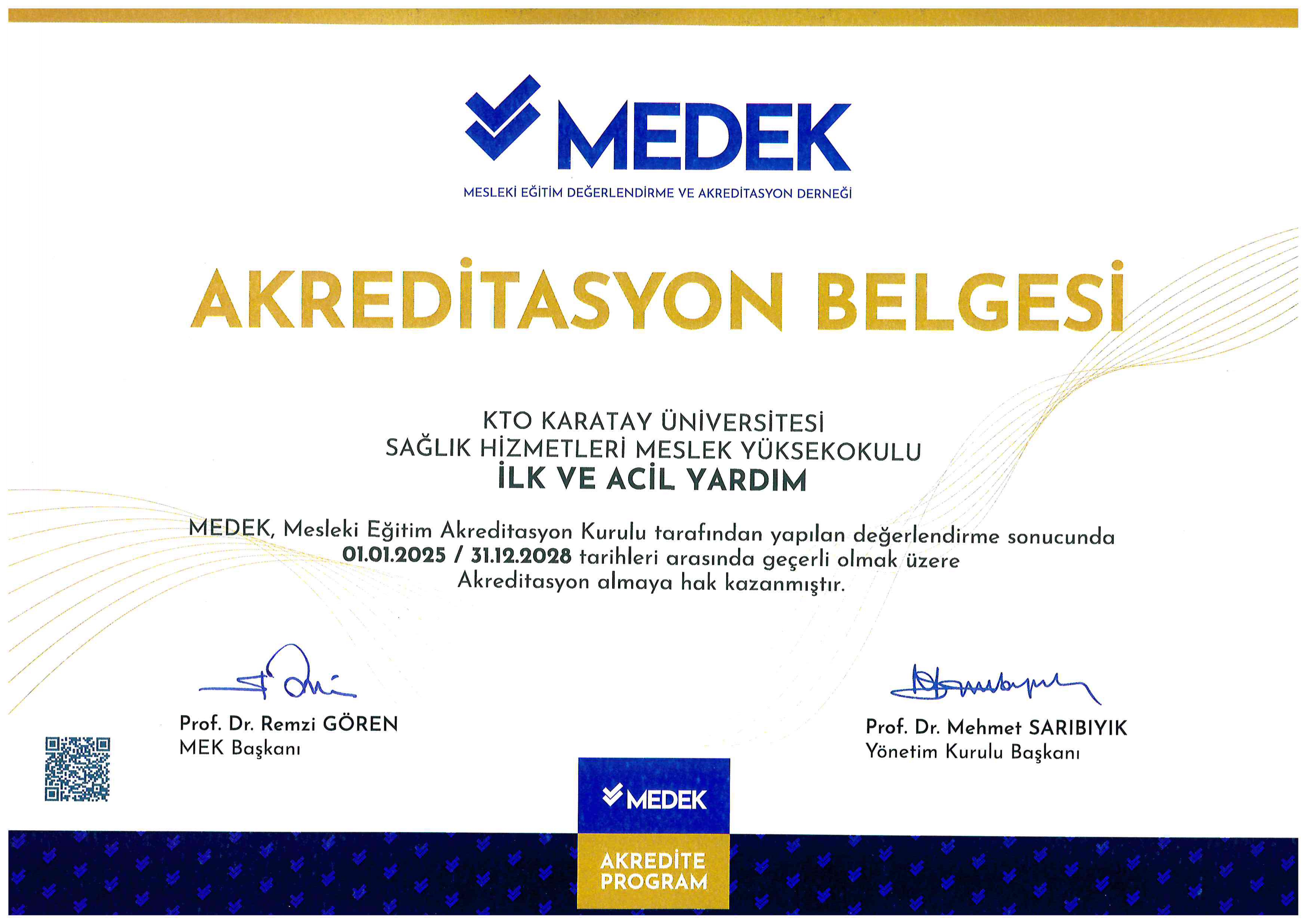 İlk ve Acil Yardım Programı Akreditasyon Belgesi
