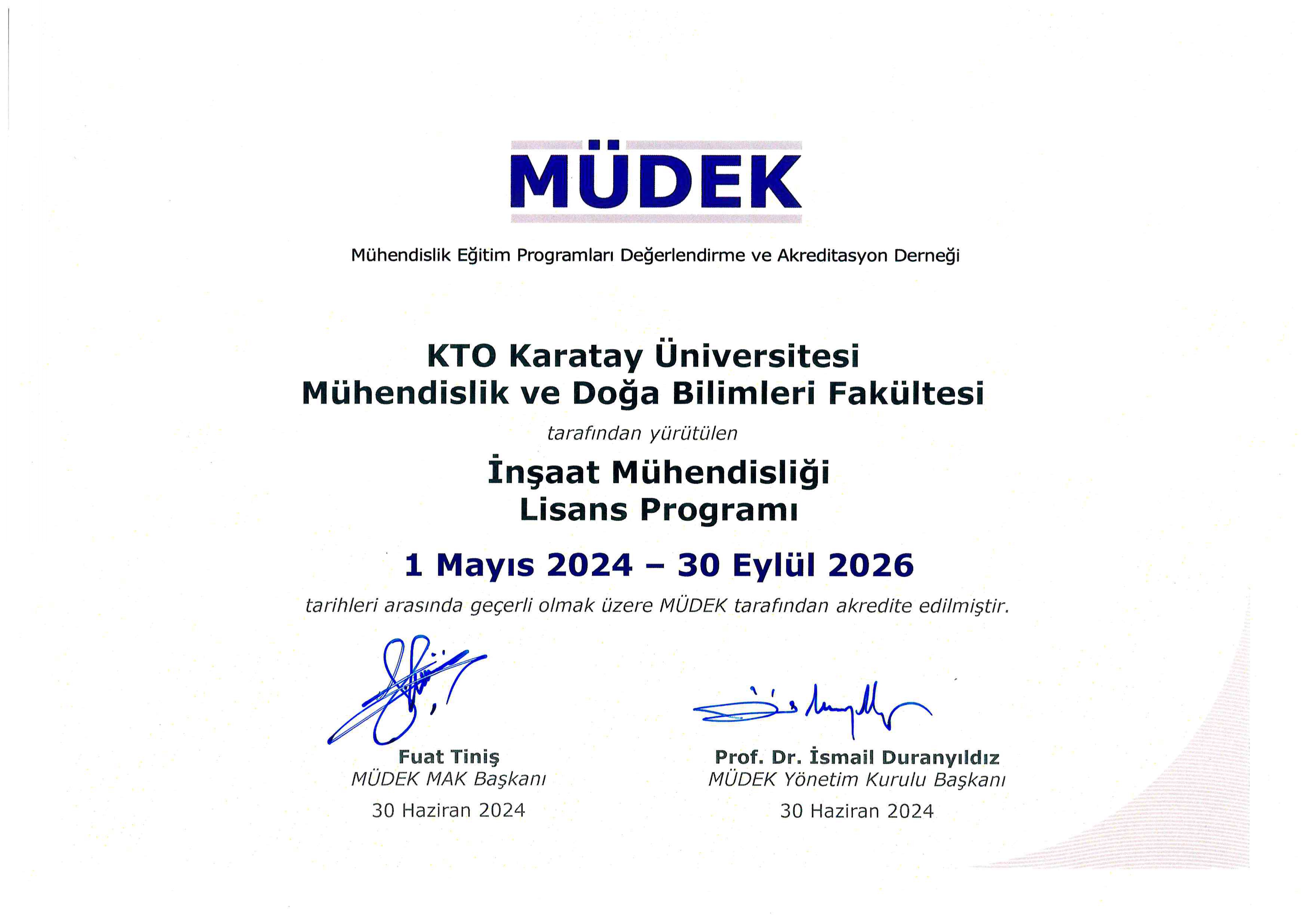 İnşaat Mühendisliği Bölümü Akreditasyon Belgesi