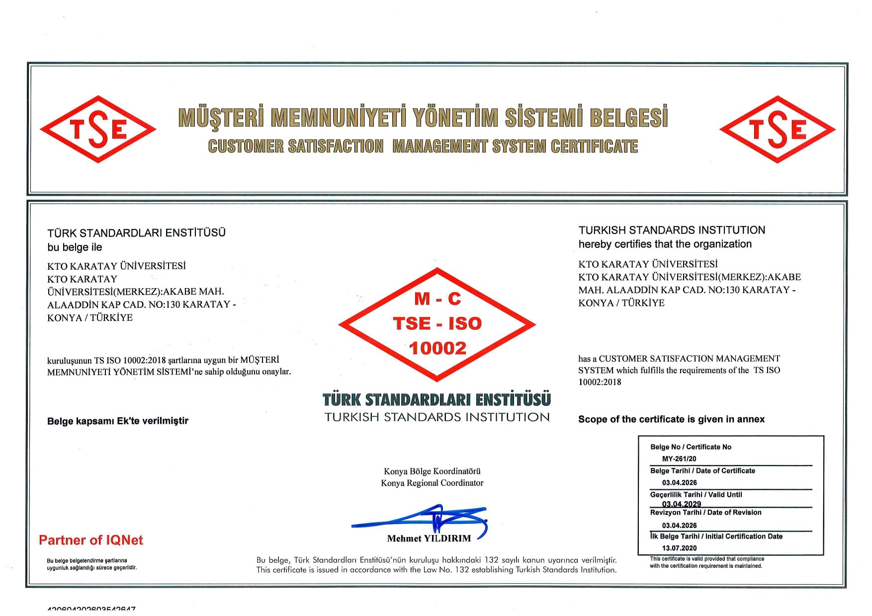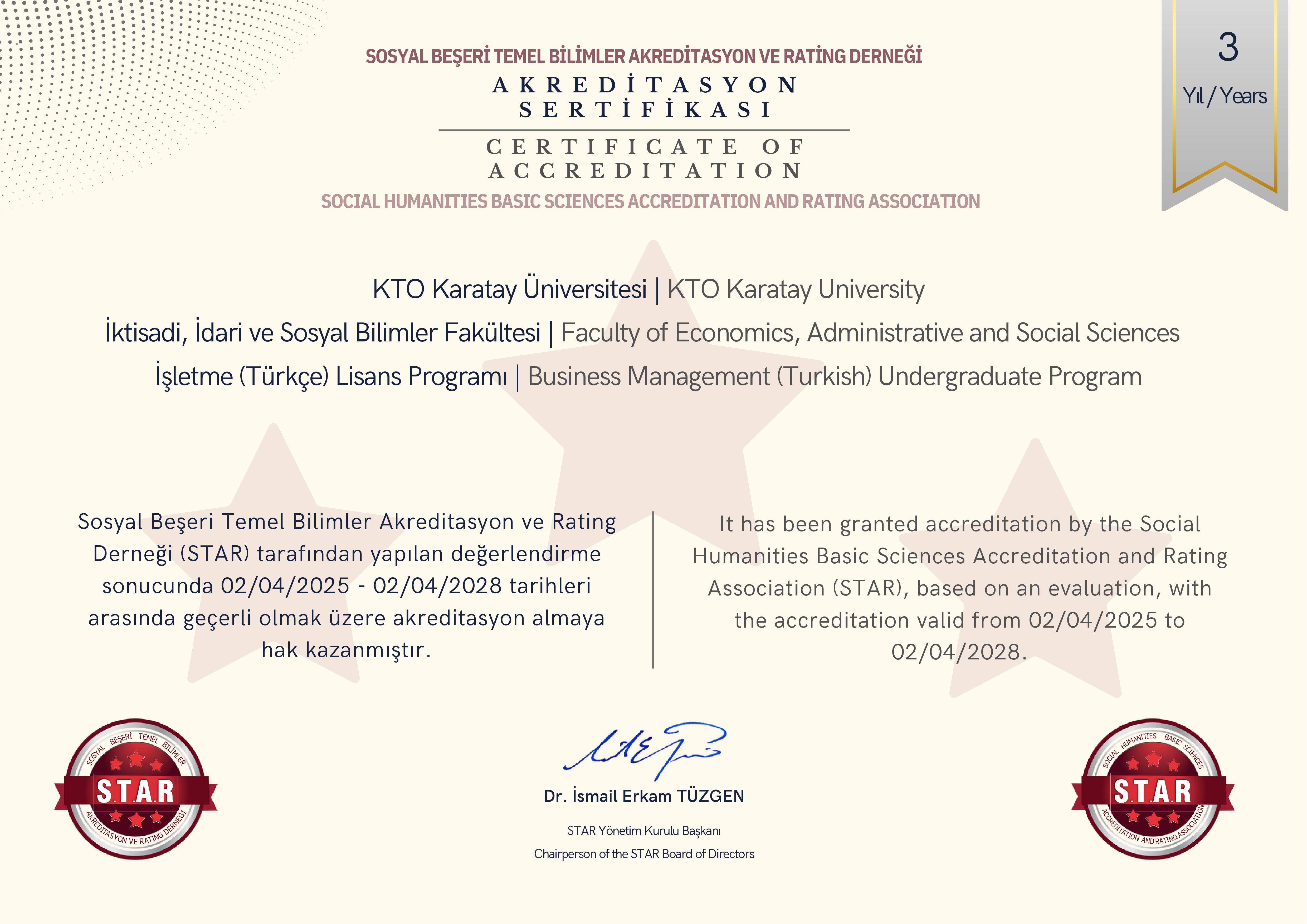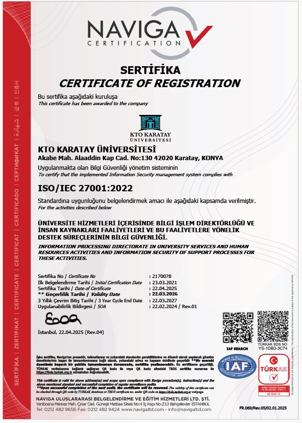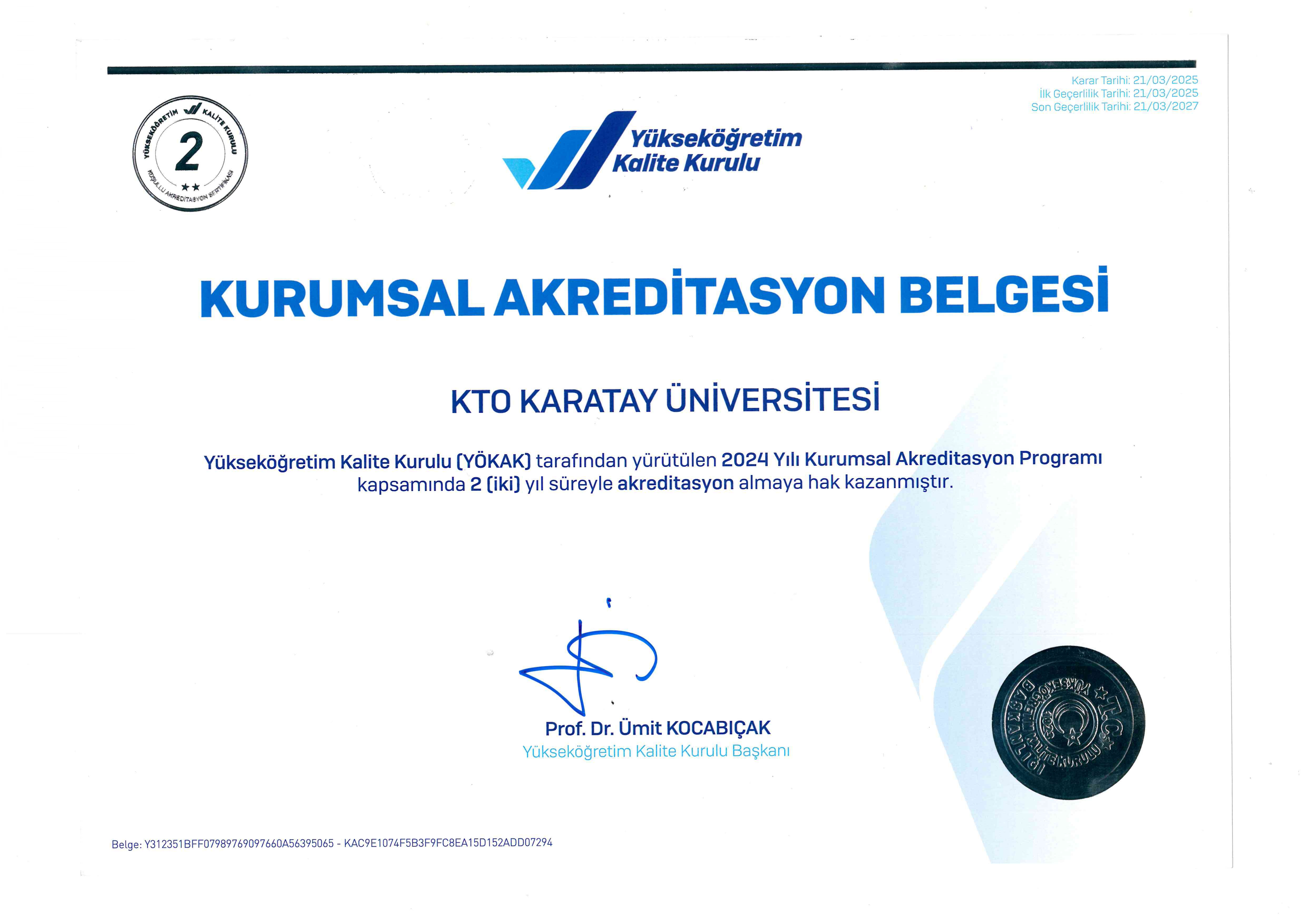 KTO Karatay Üniversitesi Kurumsal Akreditasyon Belgesi
