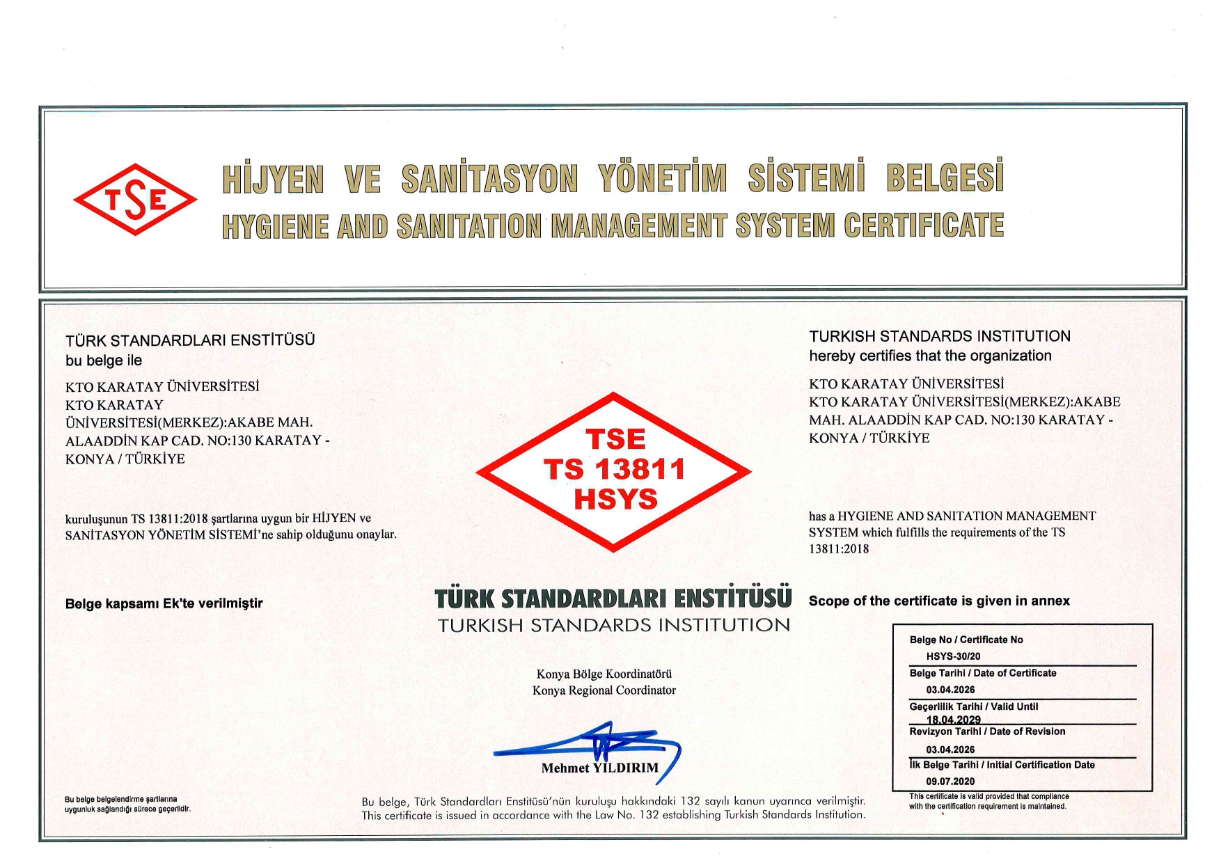 ISO 13811 Hijyen ve Sanitasyon Yönetim Sistemi Belgesi