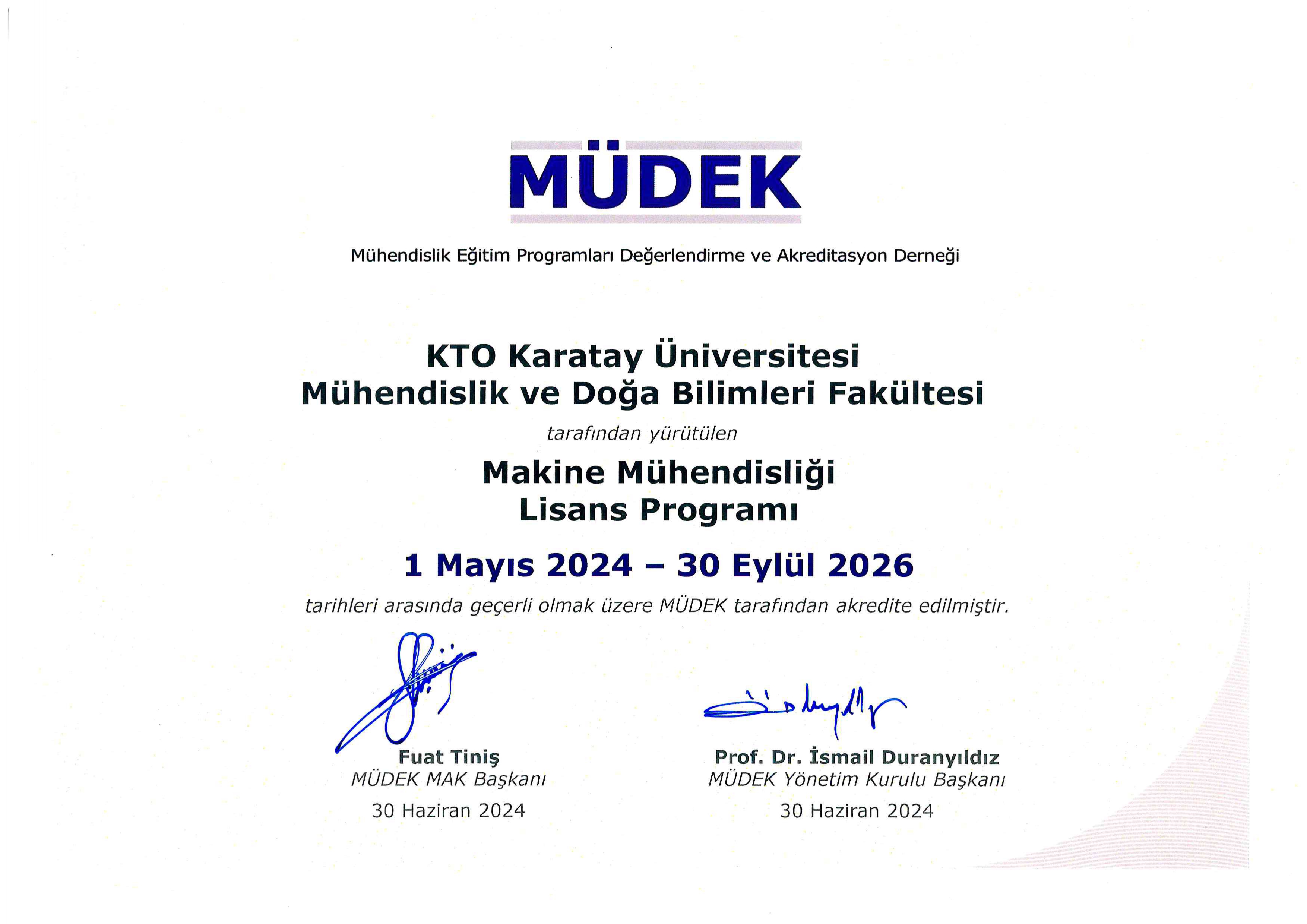 Makine Mühendisliği Bölümü Akreditasyon Belgesi