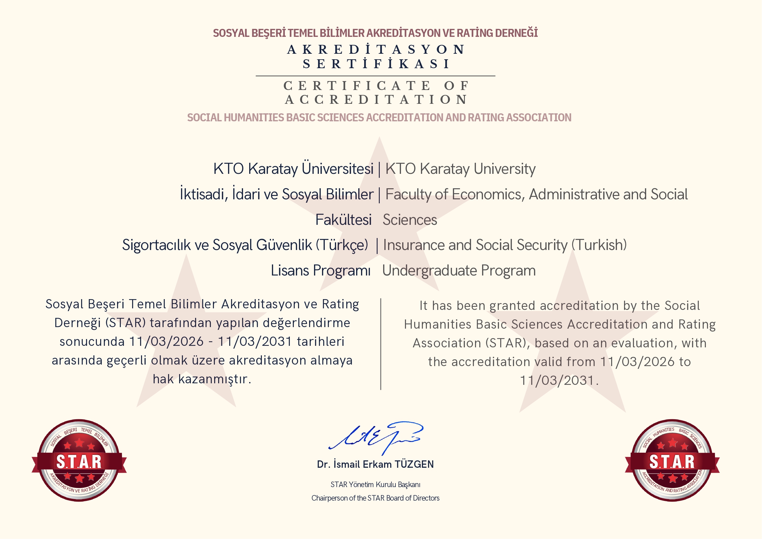 Sigortacılık ve Sosyal Güvenlik Programı Akreditasyon Belgesi