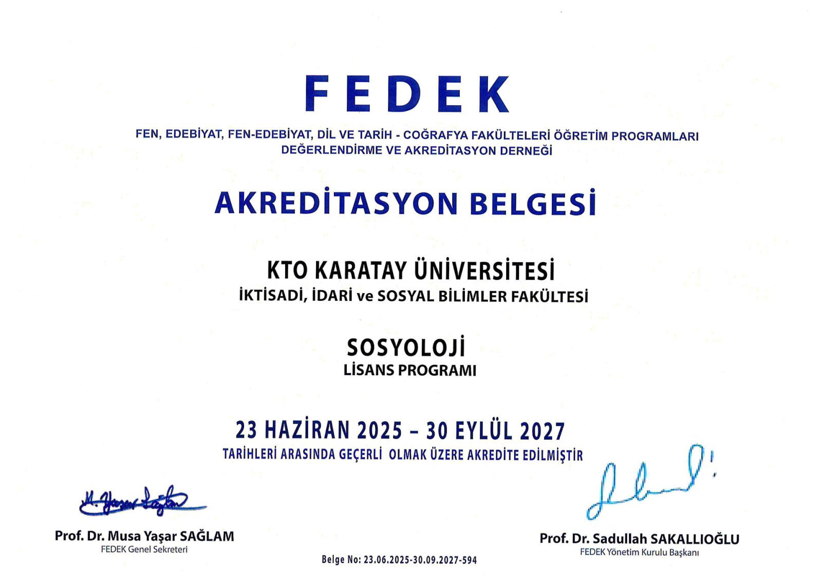 Sosyoloji Bölümü Akreditasyon Belgesi