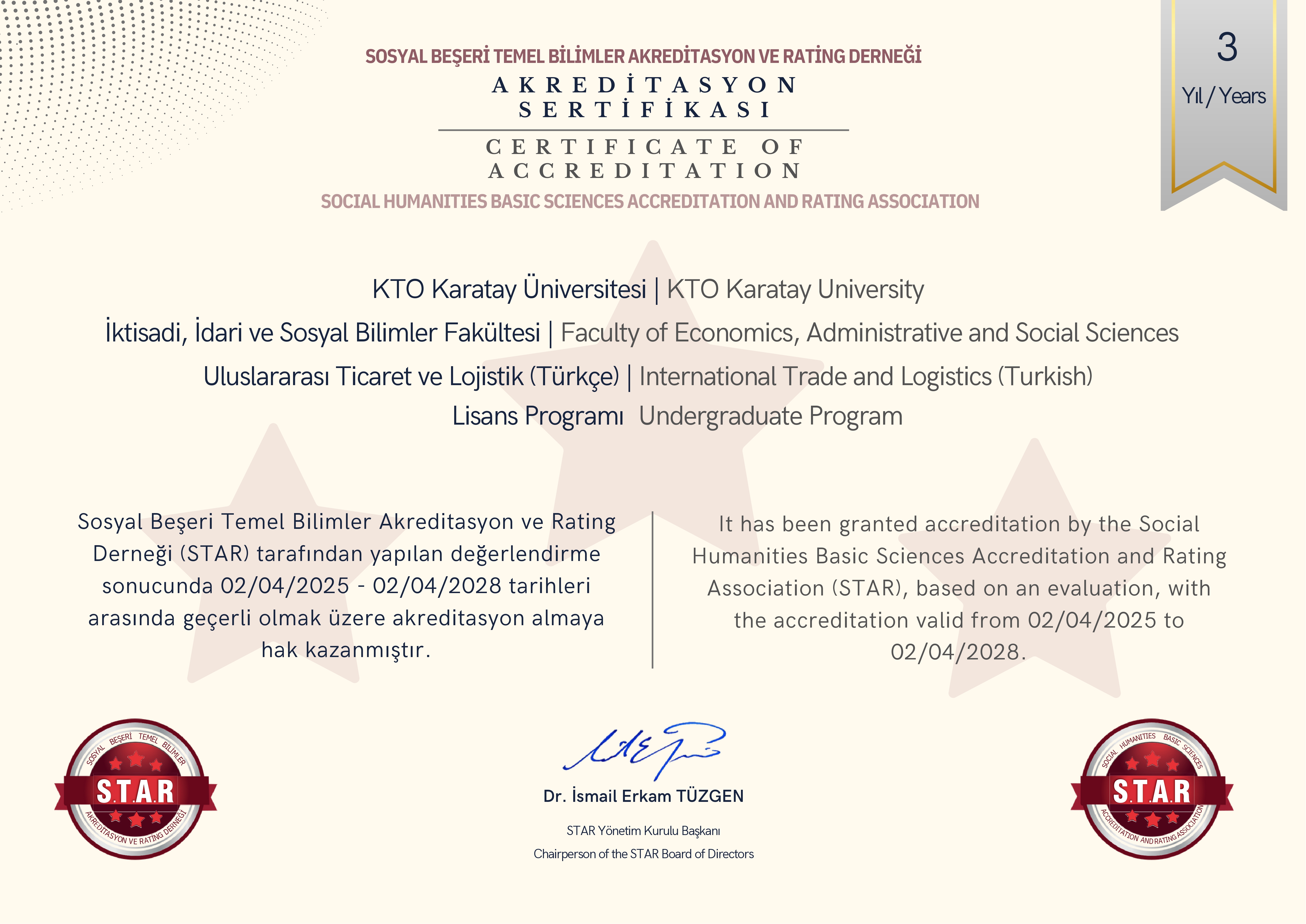 Uluslararası Ticaret ve Lojistik Bölümü Akreditasyon Belgesi